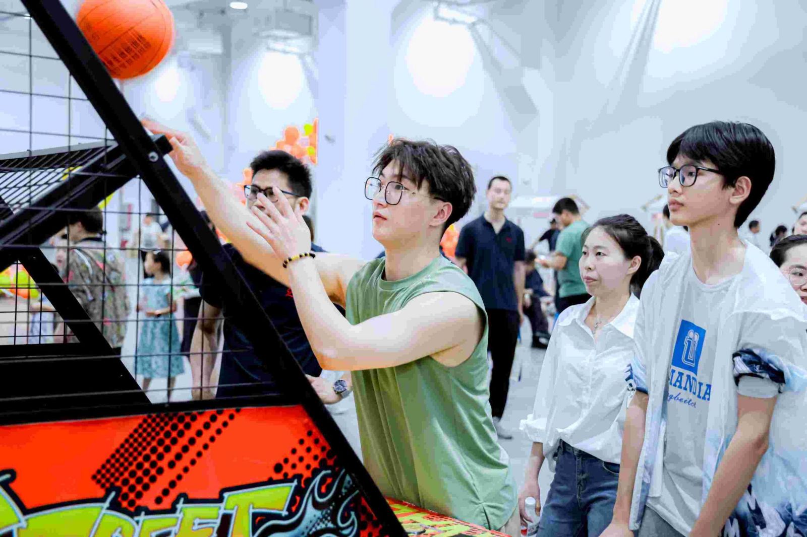 在“勇氣大挑戰”“灌籃高手”游戲中,孩子們個個磨拳擦掌,相互比拼,挑戰自我。每次命中、蹦高或飛速滑下都興奮不已,并和爸爸媽媽們分享成功的喜悅